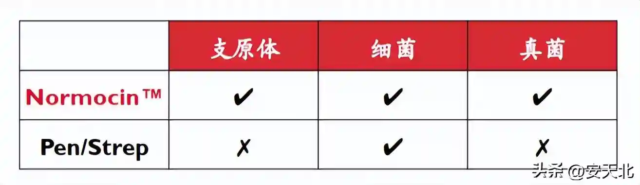 表2Normocin™和普通双抗对比