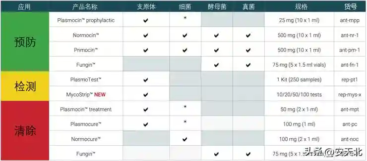 1.支原体专用预防试剂——Plasmocin™Prophylactic
