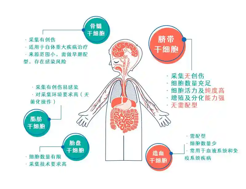 从年龄上来讲,脐带、脐带血和胎盘应该最具优势,乳牙牙髓次之。
