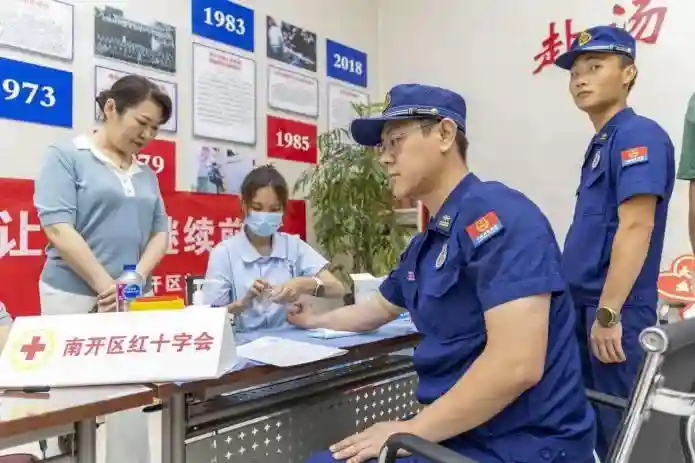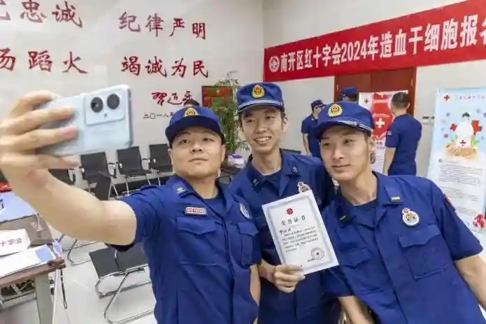 “让大爱传递、让生命继续前行”南开区红十字会2024年造血干细胞报名采样活动近日在区消防救援支队举行,16名“火焰蓝”参与报名采样。