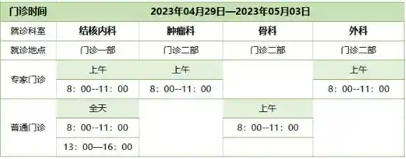 4月29日至5月3日全日普通门诊,出节假日专家门诊;
