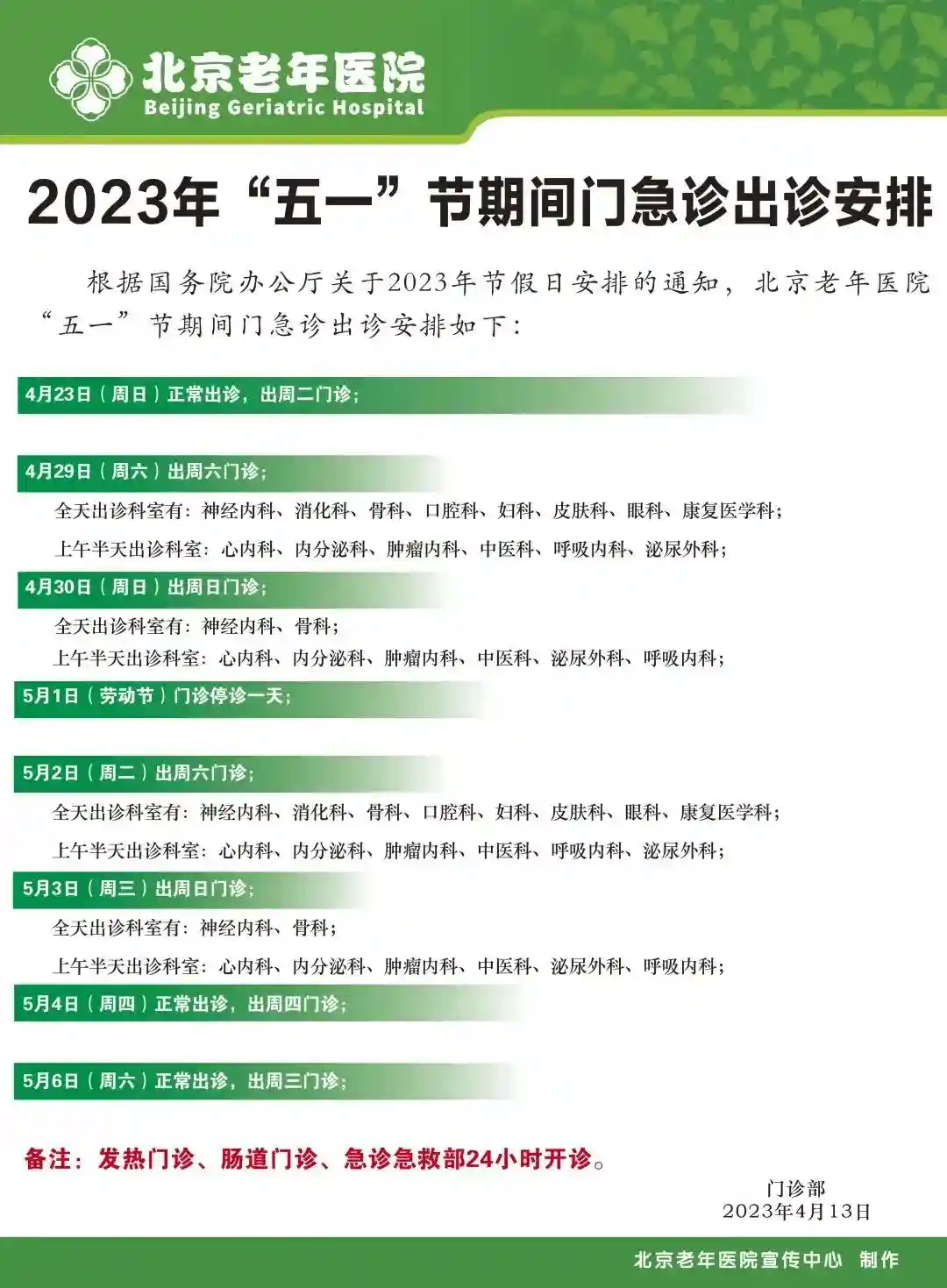 5月1日,门诊停诊一天;