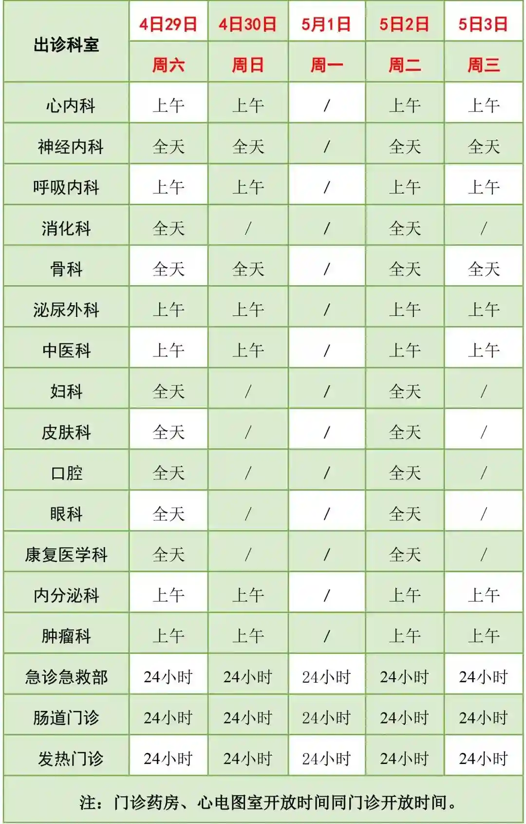 【4月29日至5月3日开诊科室】