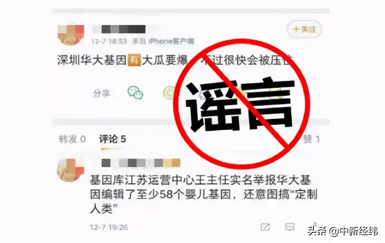 此前在12月7日,有网友称:基因库江苏运营中心王主任实名举报华大基因编辑了至少58个婴儿基因,还意图搞“定制人类”。