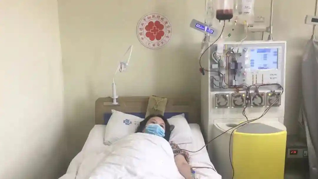 7月29日上午,在四川省人民医院血液科单采室,医生正在用血细胞分离机采集周美伶的造血干细胞,几小时后,她顺利成功捐献235毫升造血干细胞。捐献后,受助患儿家属委托医护人员向她致送了感谢信和感恩爱心卡,感谢她义无反顾的大爱善举。周美伶备受感动。