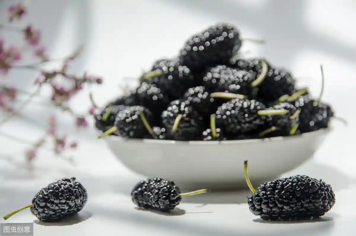 [推荐食材]桑椹:性味甘寒,归心、肝、肾经,补益肝肾,滋阴养血,用于血虚之眩晕、目暗、耳鸣、失眠、便秘。现代研究,桑椹含葡萄糖、果糖、鞣酸、维生素A、B1、B2、C等。