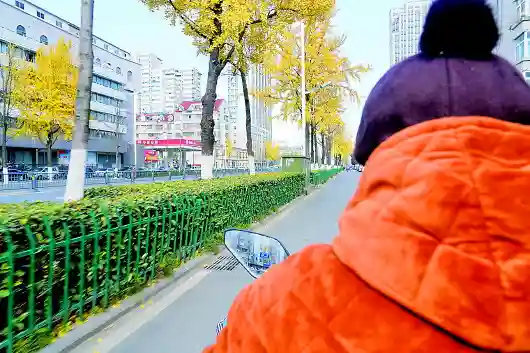 寒风中,施金利从中途宿舍骑车到中科大附一院为陪护的胡伟送饭。本报记者水金辰摄