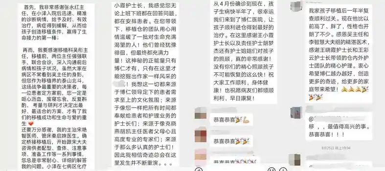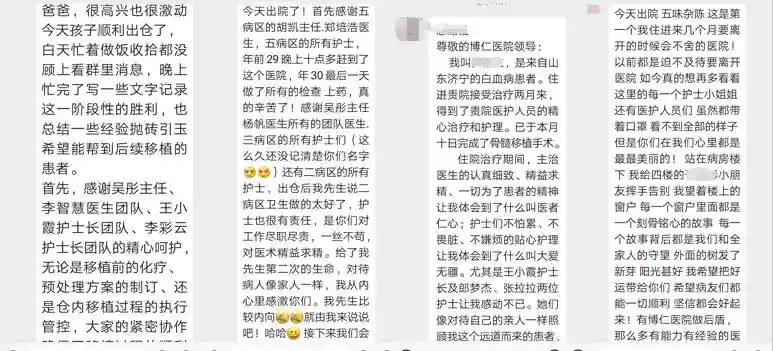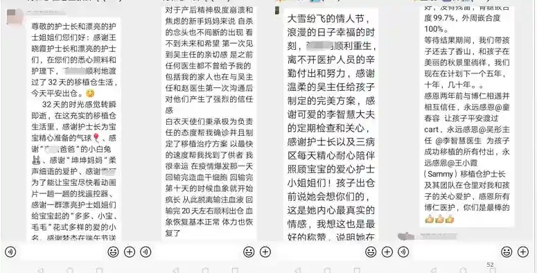 对于移植医护团队的付出,患者们也有许多发自肺腑的感谢。