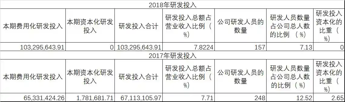 研发投入增加,研发人员锐减。对比2017年和2018年,可以看出,公司在研发投入上有大幅度的增长,然而公司的研发人员数量却大量减少,其中的原因耐人寻味。