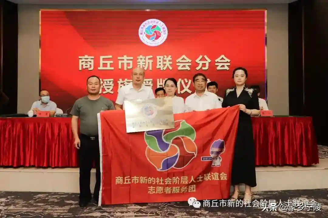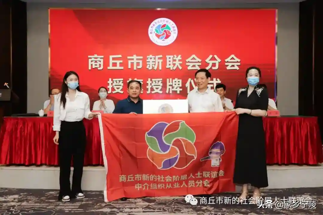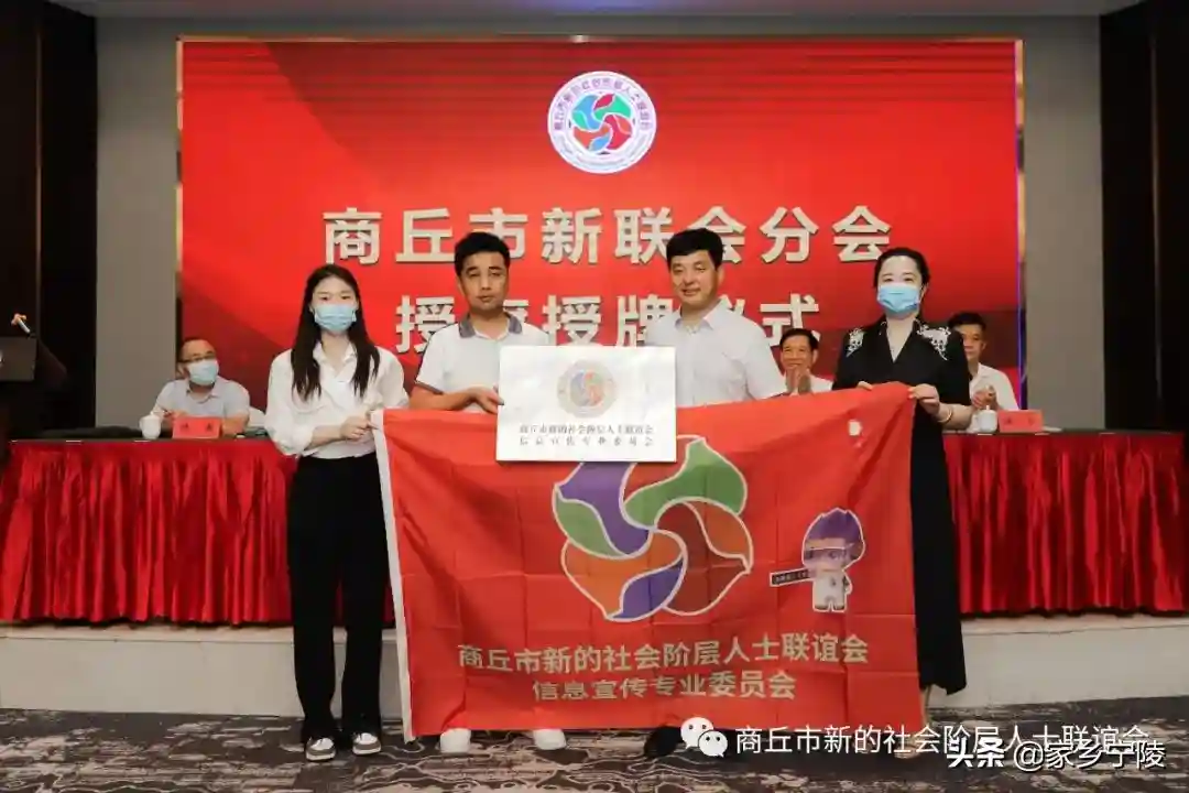 凝聚思想共识、汇集智慧力量,助推商丘经济社会高质量发展。6月24日,商丘市新的社会阶层人士联谊会分会、专业委员会和行业服务团授旗授牌仪式在信华建国酒店隆重举行,商丘市委统战部副部长卢成玉,市委统战部新的社会阶层工作科科长刘慧林、副科长陈赛出席仪式,仪式由市新联会会长祝春华主持。65位新阶层人士参加了仪式。