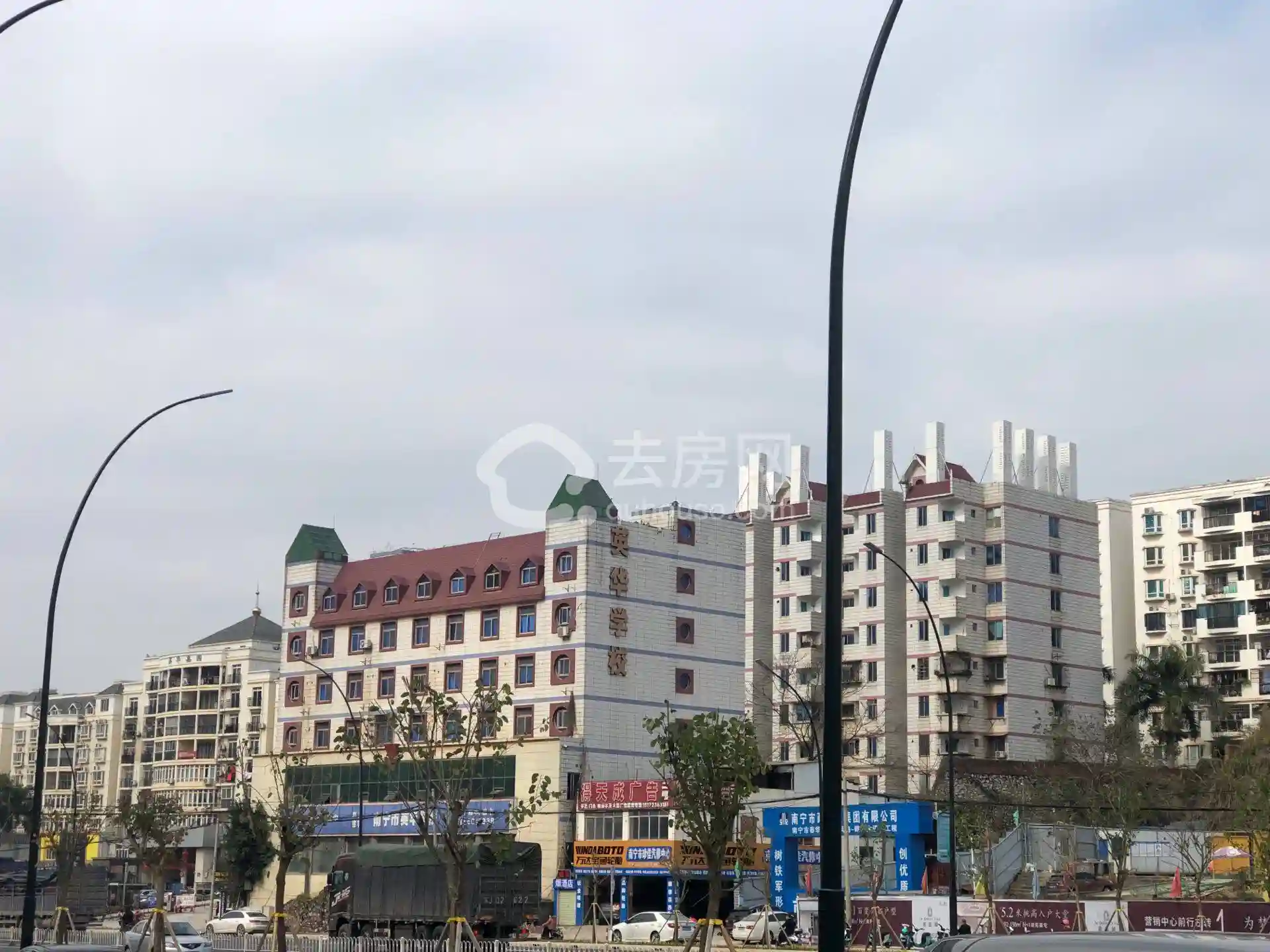 南宁市第十三中学五象校区位于五象新区良玉大道北侧,玉象路东侧。项目将按33个教学班设置,预留3个班的教学及教学辅助用房,建设总建筑面积为40420㎡。目前项目已经围挡,但没看到有工人在施工,旁边的便民临时菜市场也还在营业中。