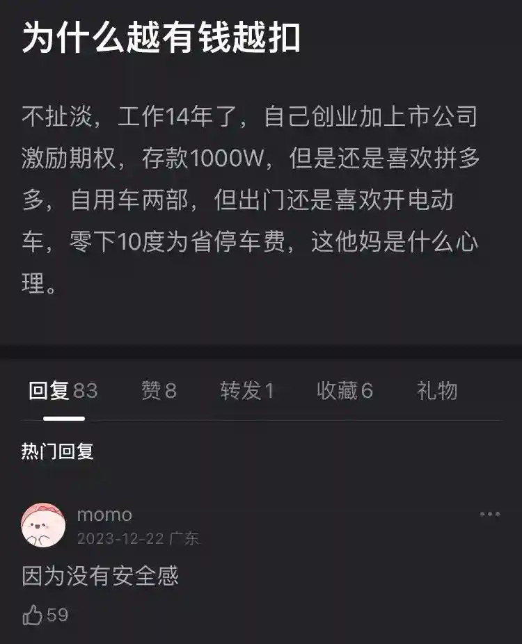 虽然有1000万的资产,但还是对未来没有安全感。身边的中产阶级朋友,曾因为投资一夕亏损掉所有家产,后来开网约车挣钱连押金也付不上。
