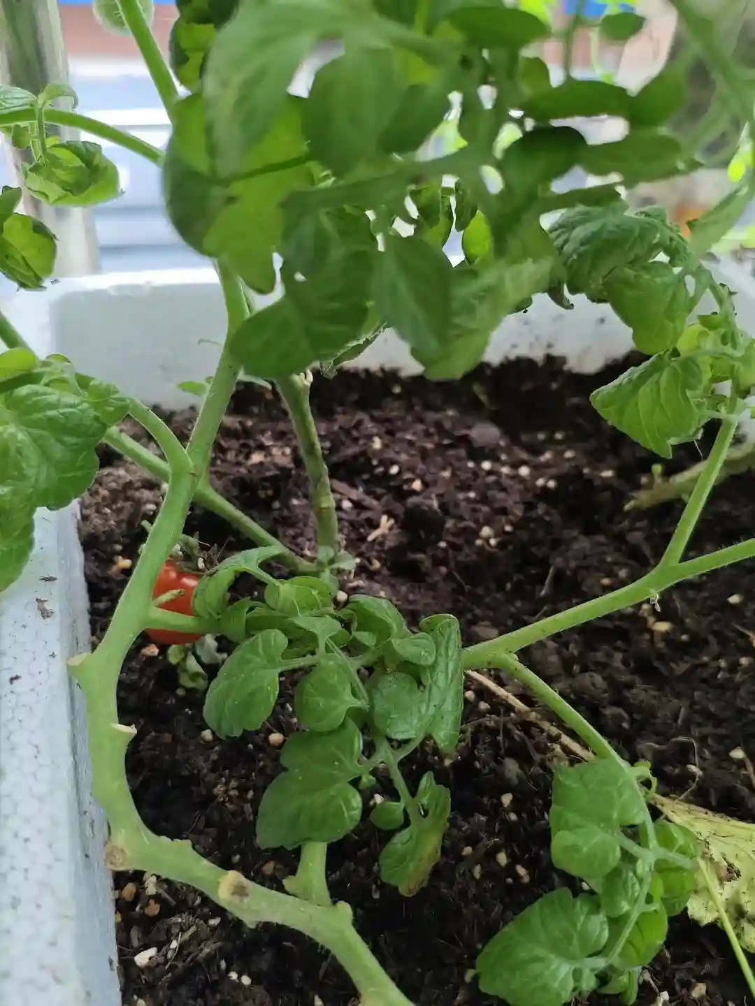 小落在阳台种植的番茄
