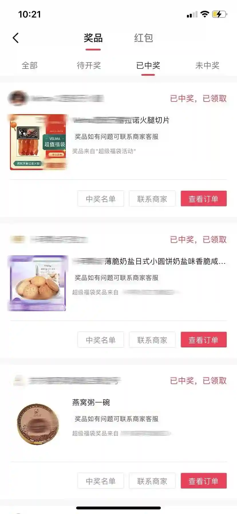 与非参与线上抽奖活动的部分中奖记录