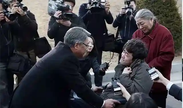 没成想,姜还是老的辣。李长焕不仅在与节目组的对质中信口雌黄,且招来立场不坚定的李道亨研究员在记者见面会上作伪证。在电视台领导的再度施压之下,尹PD们辛苦追击来的真相遭遇了停播的厄运。不仅如此,大批民众受到一边倒的舆论诱导,纷纷在电视台楼下打出污蔑性质的标语,称尹PD们歪曲偏颇真相。望着楼下那些“请愿”的民众,悲愤的尹PD同节目组前辈有如下对话: