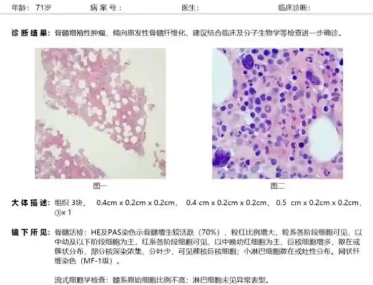 其临床有脾脏明显增大(多为巨脾)及各器官髓外造血等特征表现,血液学特征为外周血细胞涂片可见畸形红细胞与数量不等的幼稚粒、红细胞,组织病理学显示骨髓纤维组织增生,病程中可与其他骨髓增生性疾病转化,晚期可能出现骨髓衰竭。
