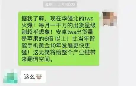 而在TWS大热中,受益最大的是华强北,根据机构调研显示,华强北的贴牌TWS销售火爆,每月的销量都在10KK级别,甚至有点重现“山寨机”时代的意思。