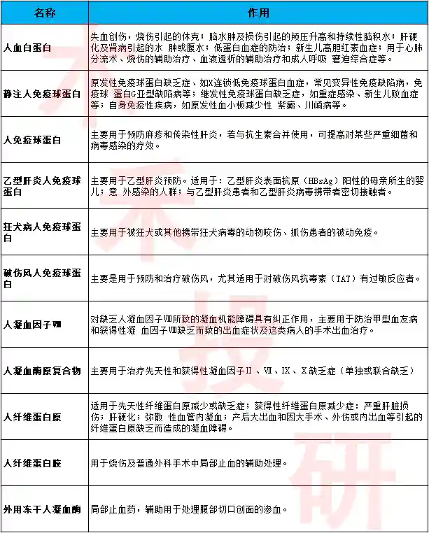 另外我把华兰血液制品的主要产品以及相对应的功效做了一张表格。