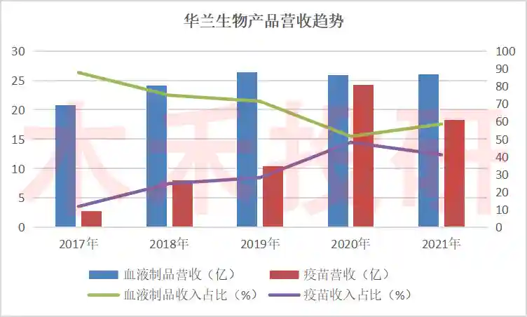 2021年血液制品营收26亿,2020年也是26亿,同比增长仅0.25%。