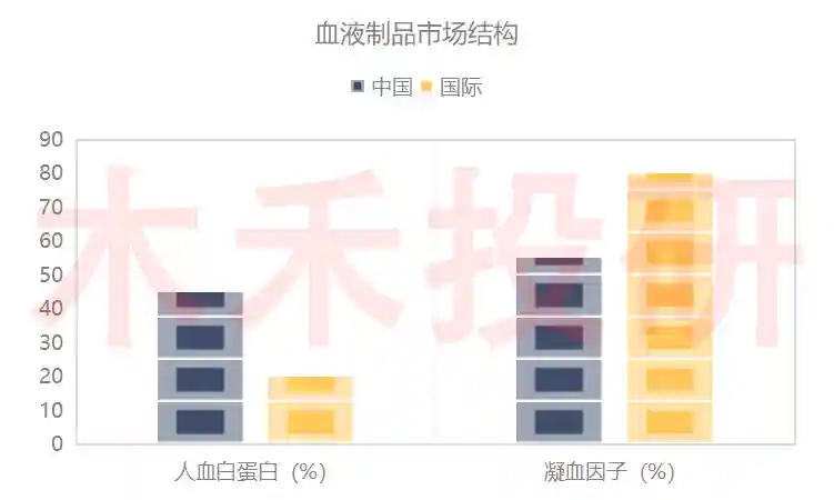 但是国际上情况不一样,主要以免疫球蛋白与凝血因子为主,人血白蛋白占比不足20%。