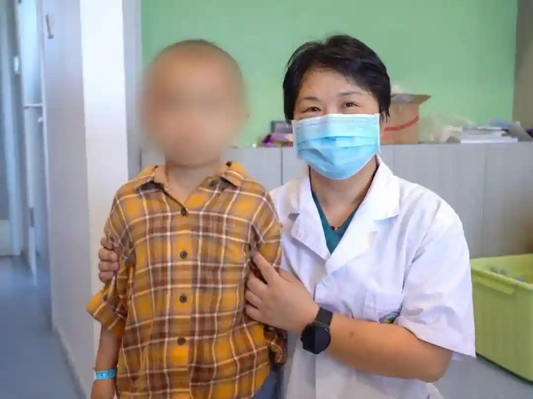 省妇女儿童医学中心血液肿瘤科主任医师董秀娟和患儿合影