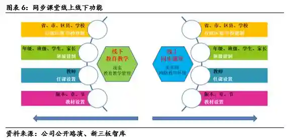 同步课堂按照不同的学校、不同的年级、不同的班级、不同的教材设置线上课程,搭建起与线下的教育资源相一致的教育资源。线上的教学资源是对线下教育的补充,学生在线下学习后可以通过线上的学习进行巩固强化,使线上教育对线下教育进行辅助。