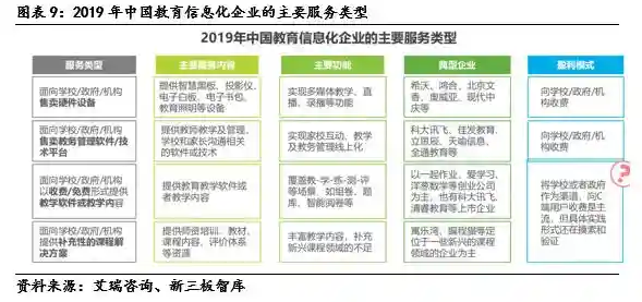 现阶段教育信息化企业主要有四种服务类型:(1)硬件提供商;(2)教务管理软件/技术平台提供商;(3)教学管理软件或教学内容提供商;(4)补充性的课程解决方案提供商。