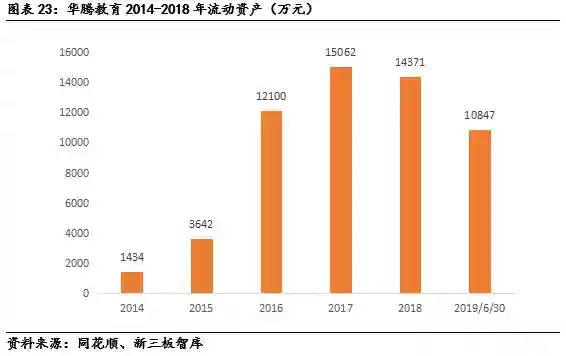 2018年期末,华腾教育货币资金为11266.54万元,相比2017年增长1.26%,占总资产比例达70.09%;流动资产总计达14371万元,占总资产比例高达89.41%。表明公司现金储备和流动性充足,为未来公司研发新产品以及进军新市场提供了有力保障。