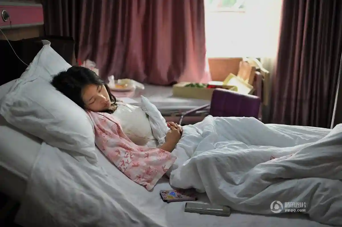 手术后第三天,菲菲在病房里熟睡。此刻她已经好多了,但出院至少还有4天时间。